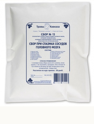 Сбор № 13 предназначен наладить кровообращение и стабилизировать внутричерепное давление, эффективно устранить головокружения и головные боли любой этиологии, нормализовать сон, оказать общее благотворное влияние на весь организм.